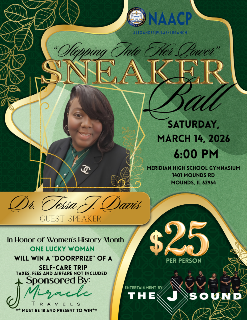 MOUNDS, Ill. — The Alexander–Pulaski Counties Branch of the NAACP will host its 2026 Sneaker Ball on Saturday, March 14, 2026, beginning at 6 p.m. at the Meridian High School Gymnasium, 3401 Mounds Road in Mounds, Illinois.