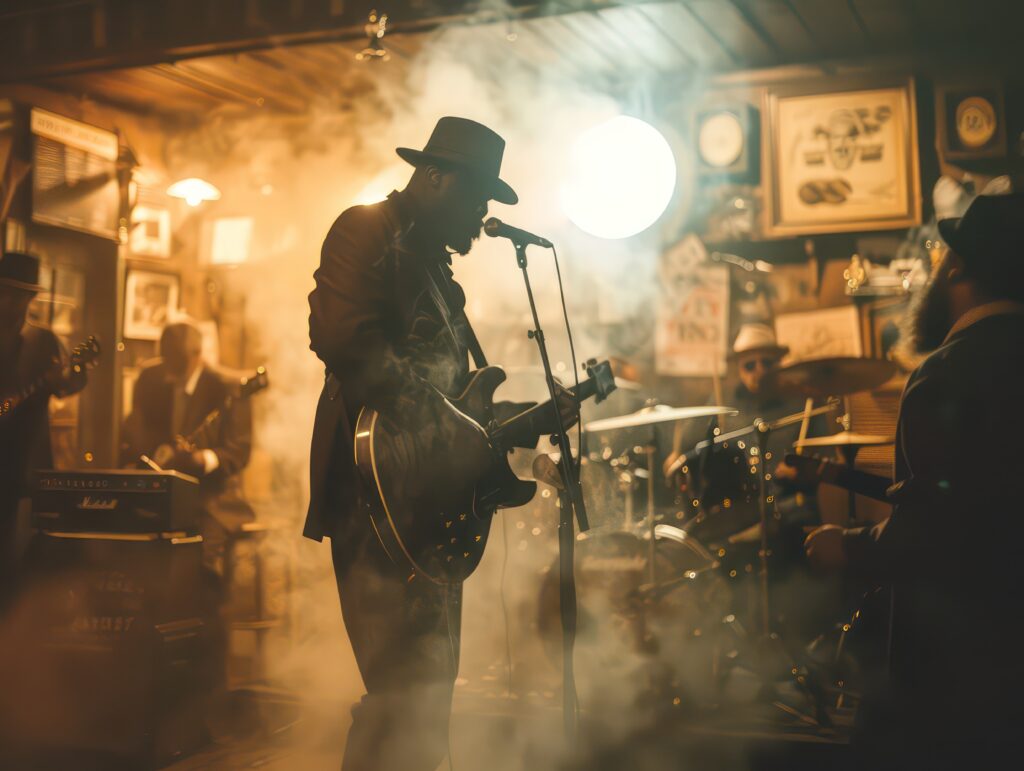 blues band playing at juke joint smoke hazy dancing vintage photograph nightclub 19s